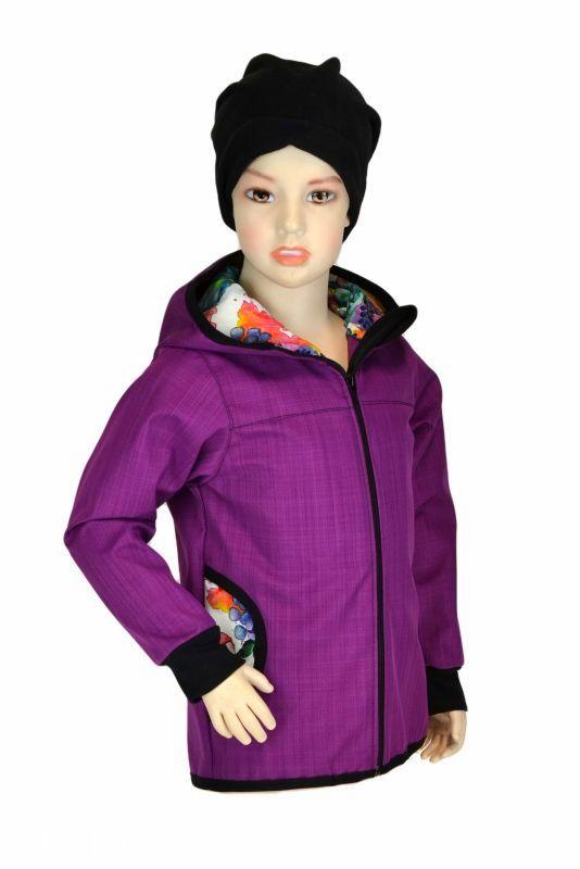 Dětská bunda - bambusový softshell - ostružina/rozkvitnutá zahrada, veľ.122-134