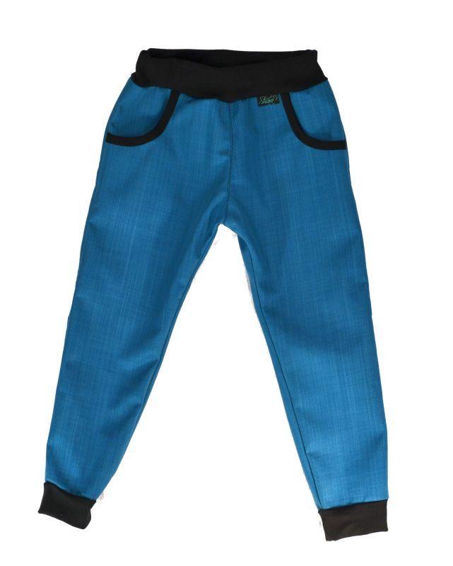 Detské nohavice z bambusového softshellu-petrolej, veľ. 140-152