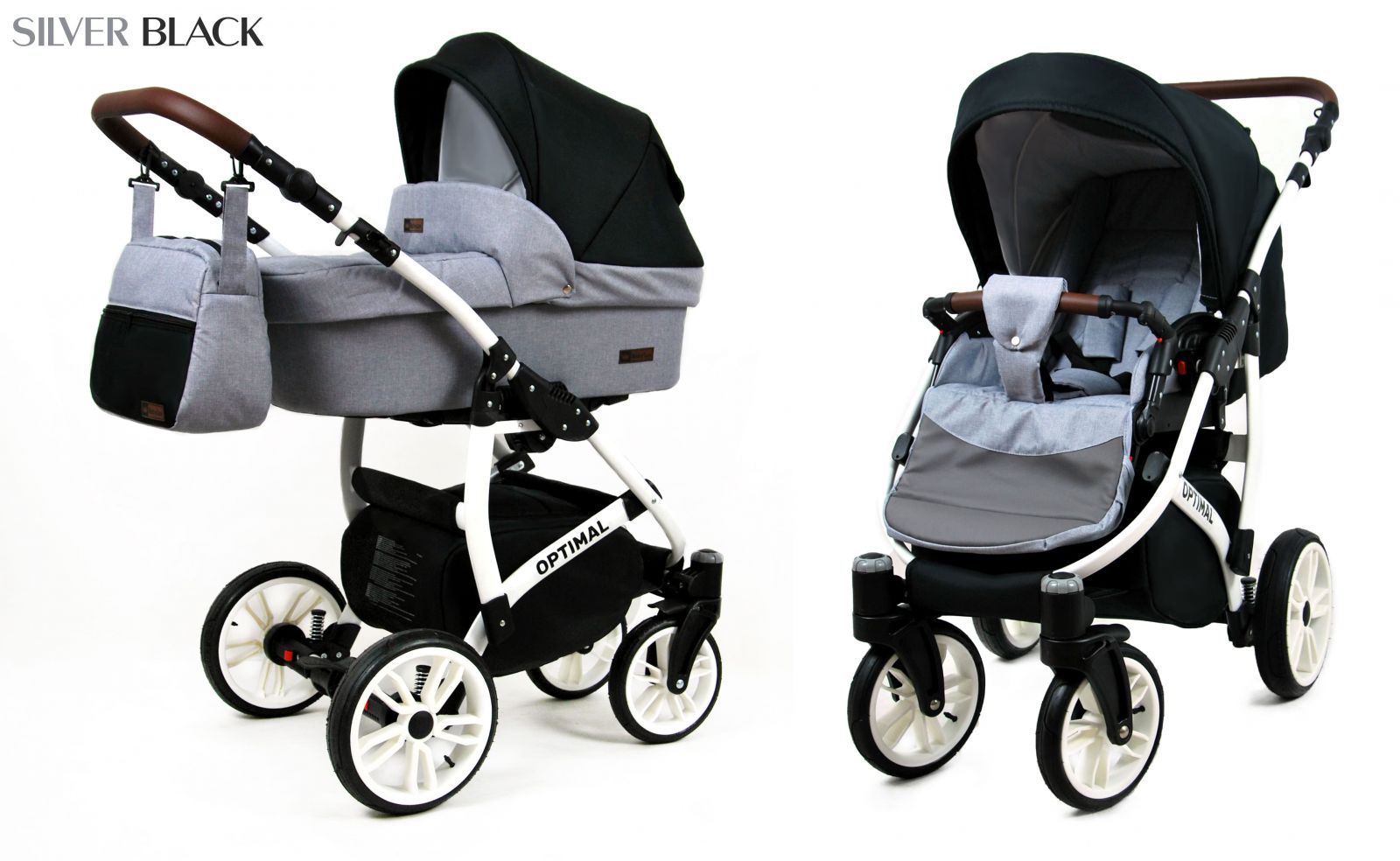 Kombinovaný kočík Raf-pol Optimal 2v1 - Silver black (3-kombinácia)